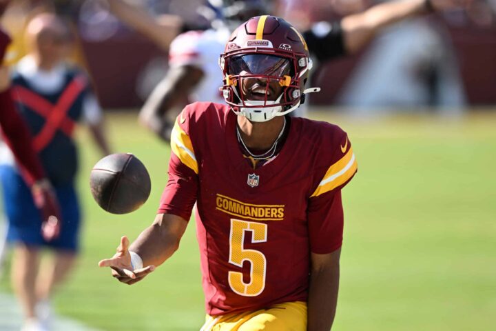 (Photo by Greg Fiume/Getty Images) The Washington Commanders have to be pleased with what they have seen from Jayden Daniels. Daniels, the No. 2 overall pick from the 2024 NFL Draft, showed off why he deserved to be picked so high as his dual-threat game was on full display against the New York Giants...