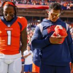 CLEVELAND, OH – SEPTEMBER 20, 1964: Wide receiver Paul Warfield #42 (right) and flanker Gary Collins #86 (obscured by Warfield) of the Cleveland Browns watch the action from the sidelines during a game on September 20, 1964 against the St. Louis Cardinals at Municipal Stadium in Cleveland, Ohio. 64-71398 (Photo by: Herman Seid Collection/Diamond Images/Getty Images)