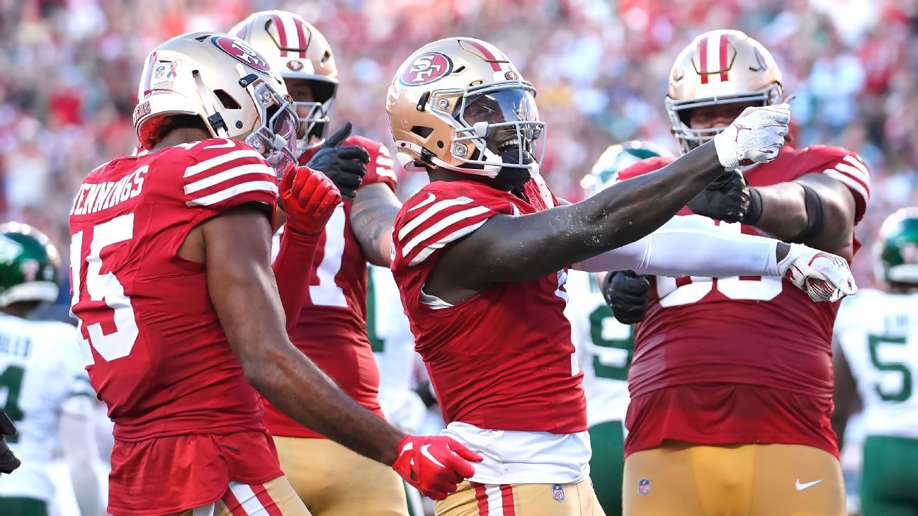 SANTA CLARA, Calif. — The San Francisco 49ers spoiled Aaron Rodgers‘ comeback party with the New York Jets on Monday, beating the quarterback in his first game since tearing his left Achilles nearly one year ago.