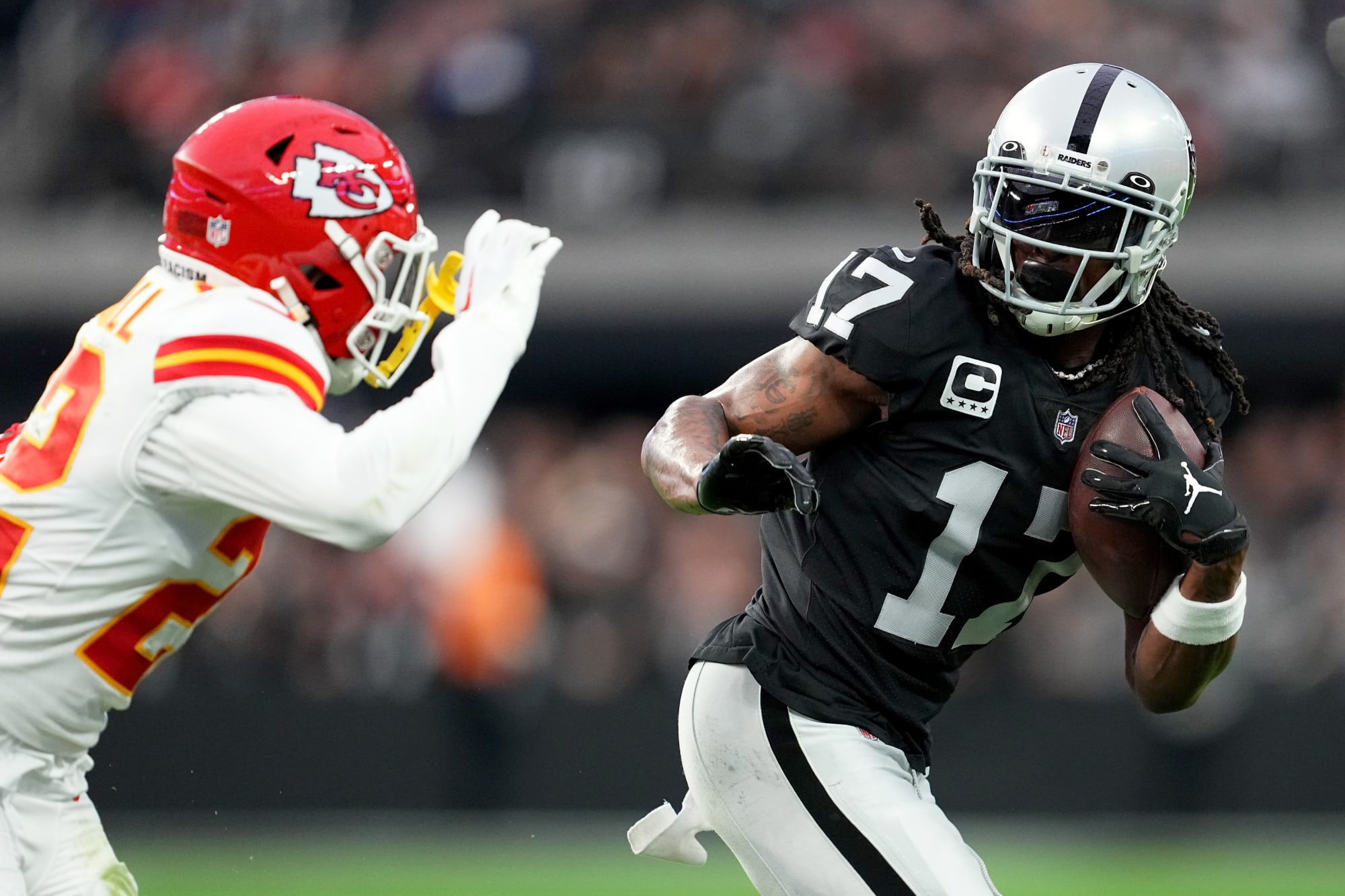 A future reporter decided to showcase his skills, and Las Vegas Raiders wide receiver Davante Adams was more than happy to oblige. Following the Raiders’ contest vs. the Kansas City Chiefs, a 10-year-old named Jeremiah stepped up to ask Adams a question about the game. Adams was happy to oblige.