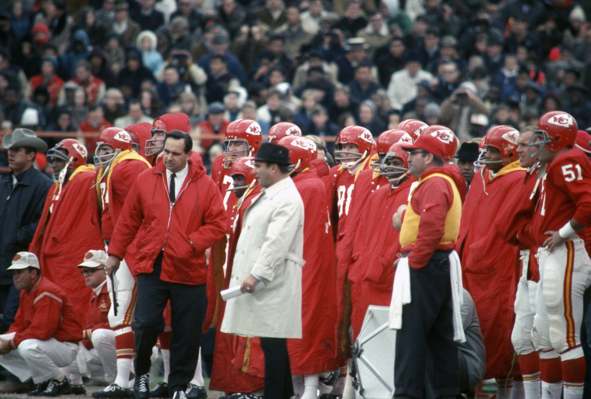 Chiefs’ head coach Hank Stram was miked and it made NFL Films history. Kansas City’s defense featured six future Hall of Famers (Buck Buchanan, Curley Culp, Willie Lanier, Bobby Bell, Emmitt Thomas and Johnny Robinson), and Vikings’ quarterback Joe Kapp was pummeled all day.