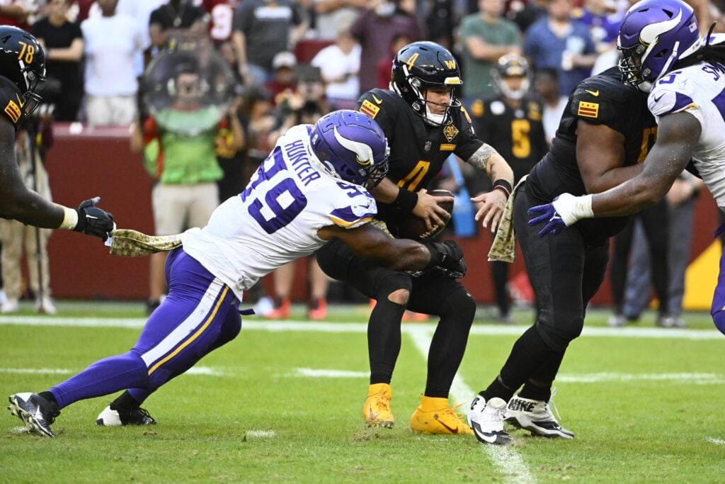 Hunter managed 10.5 sacks, 76 pressures, and a career-high 22 quarterback hits last season and would instantly give Carolina one of the most fearsome pass-rushing duos in the league. New Panthers defensive coordinator Ejiro Evero will essentially run the same scheme that the Vikings deployed in 2022, so Hunter wouldn’t face much of a learning curve.