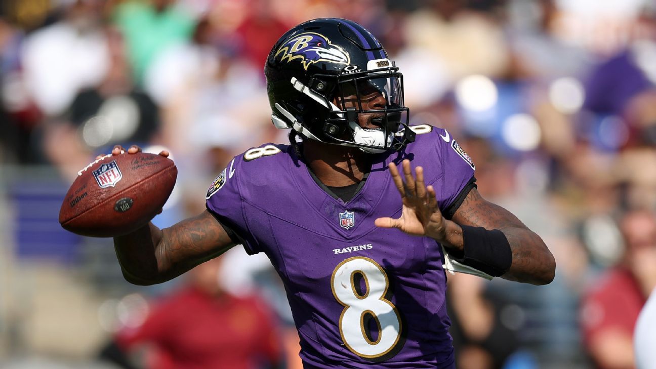 Jackson has wasted little time in stating his case for a third MVP. The Ravens’ 0-2 start was not great for his candidacy, but he’s been on a roll since. In four straight wins, Jackson is fourth in completion percentage (70.3%), third in QBR (76.1), second in yards per dropback (9.1), has thrown eight touchdowns versus one interception and has rushed for 236 yards — most among quarterbacks. In Jackson’s past two games, wins over the Bengals and Commanders, he amassed a combined 766 yards of passing and rushing.