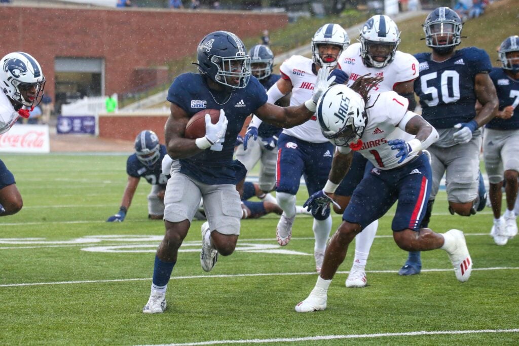 Michael Jefferson’s 17.1 yards per reception, 616 receiving yards, and five touchdowns make him the obvious choice if you’re going to pick a Louisiana wide receiver. However, you’re spoiled for choice with Georgia Southern receivers despite their offense taking on the most difficult test of their season so far. They have two receivers with 600+ yards (Derwin Burgess Jr. and Khaleb Hood) and two with six touchdowns (Burgess and Amare Jones).